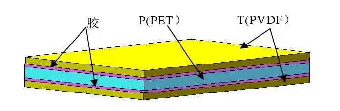 將光伏電池背板分為FPF,F(xiàn)PE,PET和PET/聚烯烴結(jié)構(gòu)。其中F為含氟薄膜;聚對苯二甲酸乙二醇酯薄膜(即PET薄膜)是由聚對苯二甲酸乙二醇酯雙向拉伸工藝制成的;E為乙烯-乙酸乙烯(EVA);聚烯烴是指以碳碳結(jié)構(gòu)為主鏈的各種塑料。這些結(jié)構(gòu)層通過復(fù)合工藝粘合成型。