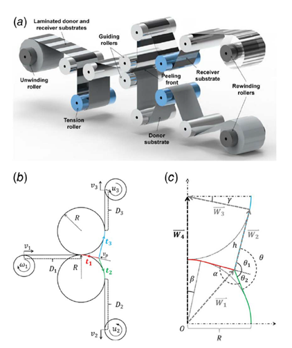 單個(gè)跨段中黏彈性卷材的行為可以用彈性模型來描述,但在多跨段系統(tǒng)中,這種預(yù)測與實(shí)際情況存在顯著差異。因此,大型、高精度的R2R系統(tǒng)中多跨段黏彈性至關(guān)重要。例如,在R2R干法轉(zhuǎn)移系統(tǒng)中,黏彈性可能導(dǎo)致薄膜剝離過程中的粘滑現(xiàn)象,給控制設(shè)計(jì)帶來巨大挑戰(zhàn)。因此,在高級(jí)應(yīng)用中必須充分考慮黏彈性效應(yīng)。05