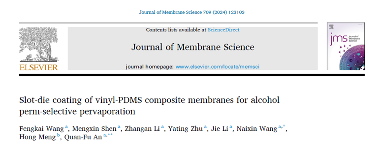 北京工業(yè)大學(xué)安全福團(tuán)隊近期于Journal of Membrane Science期刊(2024,709,123103)發(fā)表題目為Slot-die coating of vinyl-PDMS composite membranes for alcohol perm-selective pervaporation的文章。該文章第一作者為王豐愷,通訊作者為王乃鑫教授和安全福教授。