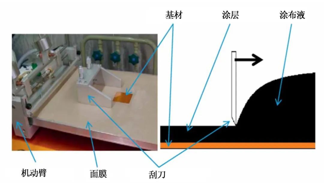 刮涂法操作簡單、工作效率高,可用于大規(guī)模膜電極制備,主要是使用刮刀將催化劑漿料刮涂在陰離子交換膜或氣體擴(kuò)散層上。Bender 等利用刮涂法將催化劑漿料刮涂至聚四氟乙烯(PTFE) 底膜上,并與噴涂法對比,認(rèn)為刮涂法更精確且速度更快。刮涂法雖然催化劑涂覆載量精度高、可重復(fù)性好,但仍存在一問題,如由于催化劑漿料直接涂覆在陰離子交換膜表面,陰離子交換膜易出現(xiàn)溶脹問題,影響電池的性能。